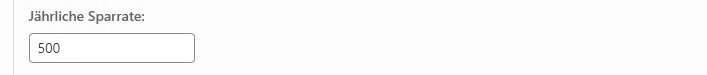 Gib hier die Sparrate an die du jährlich in die betrachtete Aktie investieren möchtest. Wenn es keine Sparrate gibt, kannst du diesen Wert einfach bei 0 belassen.