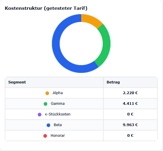 Bevor wir in die Details gehen, starten wir mit der ersten übergeordneten Kennzahl zum schnellen Vergleich von zwei Tarifen, und zwar den Effektivkosten und daraus resultierend die Ablaufleistung.