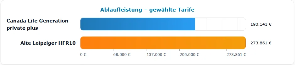 - Im Vergleich zur Nettopolice der Alten Leipzgier fällt die prognostizierte Ablaufleistung rund 83.000€ geringer aus