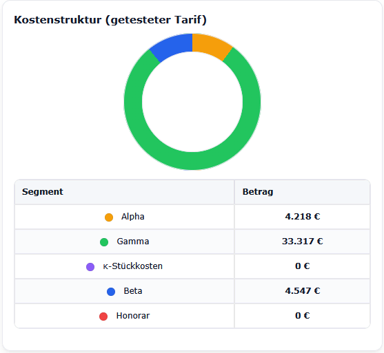Bevor wir in die Details gehen, starten wir mit der ersten übergeordneten Kennzahl zum schnellen Vergleich von zwei Tarifen, und zwar den Effektivkosten und daraus resultierend die Ablaufleistung.