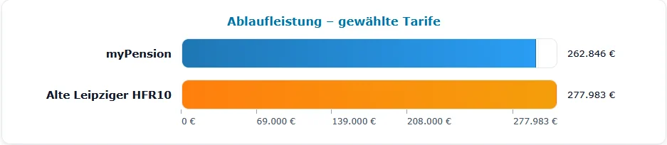 - Im Vergleich zur Nettopolice der Alten Leipzgier fällt die prognostizierte Ablaufleistung rund 15.000€ geringer aus