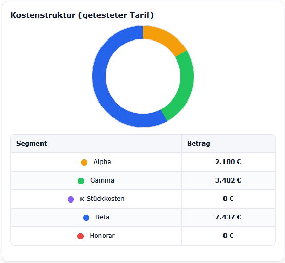 Bevor wir in die Details gehen, starten wir mit der ersten übergeordneten Kennzahl zum schnellen Vergleich von zwei Tarifen, und zwar den Effektivkosten und daraus resultierend die Ablaufleistung.