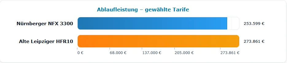 - Im Vergleich zur Nettopolice der Alten Leipzgier fällt die prognostizierte Ablaufleistung rund 20.000€ geringer aus