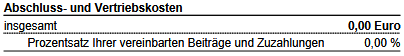 Bei der Alten Leipziger fallen in einem Provisionstarif für eine Zuzahlung einmalige Kosten in Höhe von 5,5 Prozent an. Diese setzen sich aus Abschlusskosten und Verwaltungskosten zusammen.