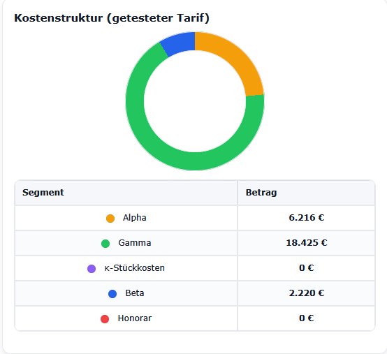 Bevor wir in die Details gehen, starten wir mit der ersten übergeordneten Kennzahl zum schnellen Vergleich von zwei Tarifen, und zwar den Effektivkosten und daraus resultierend die Ablaufleistung.